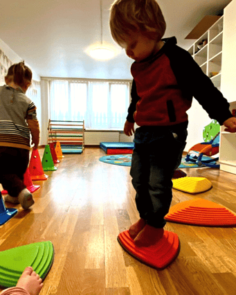 Danach durfte jedes Kind helfen, den Bewegungs-Parkour aufzubauen. Als er aufgebaut wurde, sassen wir noch einmal im Kreis und Nicole erklärte uns die Regeln und Gefahren, auf was wir gemeinsam achten müssen, damit es keine Unfälle gibt.