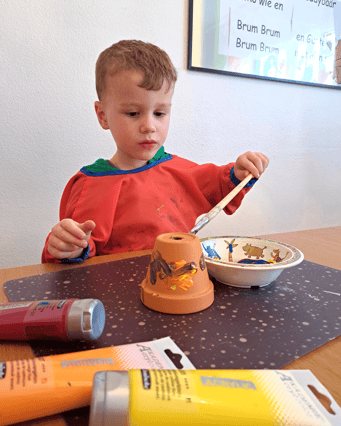 Am Morgen durften wir zusammen mit Saskia die Tontöpfchen in farbenfrohen Farben bemalen.
