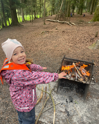 Danach durften wir den Wald mit all unseren Sinnen erforschen. Wir machten ein Feuer, um uns aufwärmen zu können und es funktionierte beim ersten Versuch.