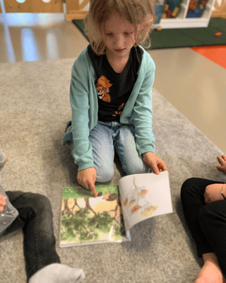 Isabelle hat uns erzählt, dass sie in der Schule ein neues Buch schreiben musste. Wir waren sehr aufgeregt, um was es sich in der Geschichte handelt. Albina hat uns gebeten im Kreis zu warten und Isabelle hat währenddessen das neue selbstgemachte Buch geholt. Wir konnten es kaum abwarten, in das Buch reinzusehen.
