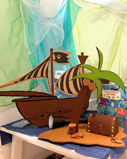 Diese Woche durften wir unser neues Thema „PIRATEN“ kennenlernen. Unsere liebevollen Betreuerinnen haben für uns etwas ganz Besonderes gebastelt. Wir haben uns sehr über die Schatzinsel und das riesige Piratenschiff gefreut.