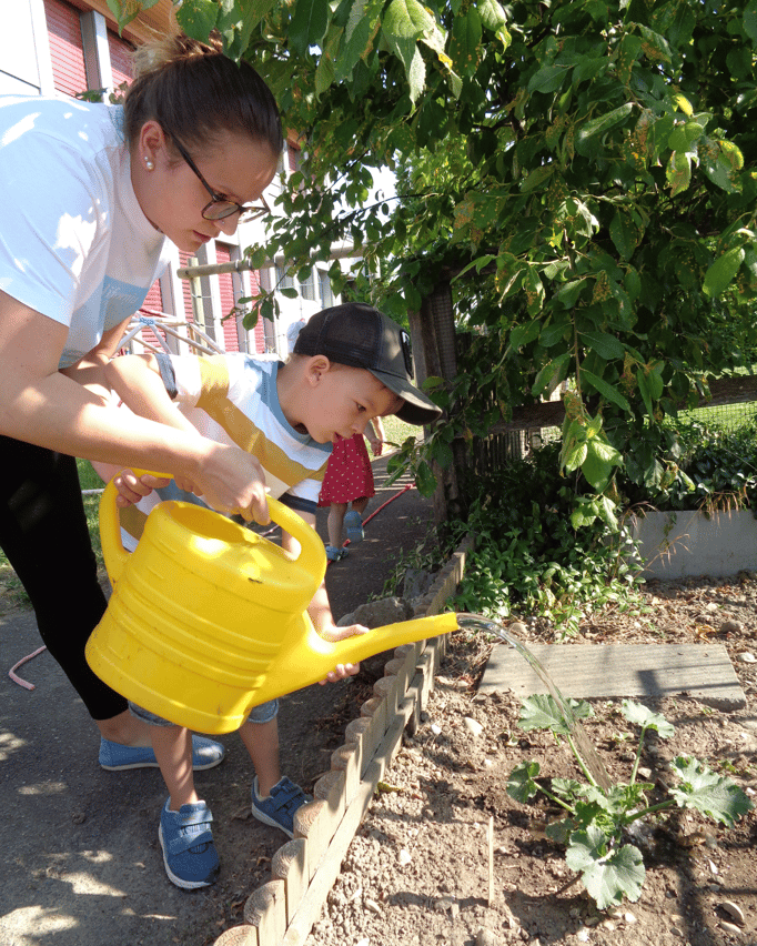 Durch deine warmen Sonnenstrahlen, wachsen bei uns im Garten gelbe und grüne Zucchetti, Schlangengurken, Salat, Kohlrabi und leckere Erdbeeren. Jetzt können wir jeden Tag im Garten sehen, wie schnell und schön unser Gemüse täglich wächst. Wir freuen uns sehr darauf, unser eigenes Gemüse bald ernten zu können.