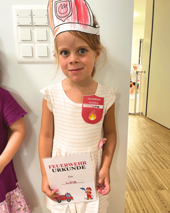 Jessica erklärte und, dass es in der ganzen Kita Feuer hat und wir die Kita nun mit dem Schlauch löschen müssen, so wie die richtige Feuerwehr. Wir waren alle ganz aufgeregt und gingen sofort auf die Suche nach dem Feuer.