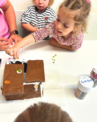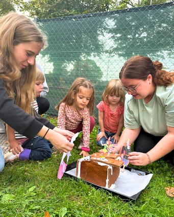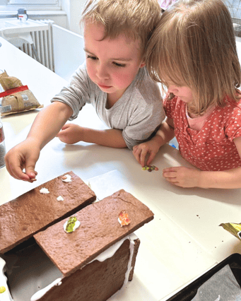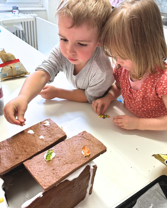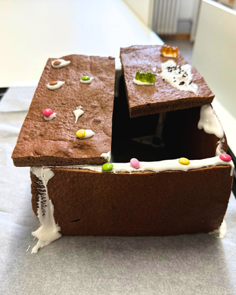 Zusammen konnten wir heute, mit den Betreuerinnen ein Lebkuchenhaus backen. Das Verzieren und kreativ sein, machte uns am meisten Spass.