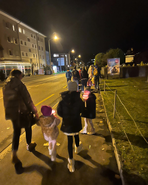 Am Freitagabend war es dann soweit, nachdem Mami und Papi uns abgeholt haben von der Kita, gingen wir schnell nach Hause um unsere Räbe zu holen. Warm gekleidet gingen wir zum Standort Baar 1.