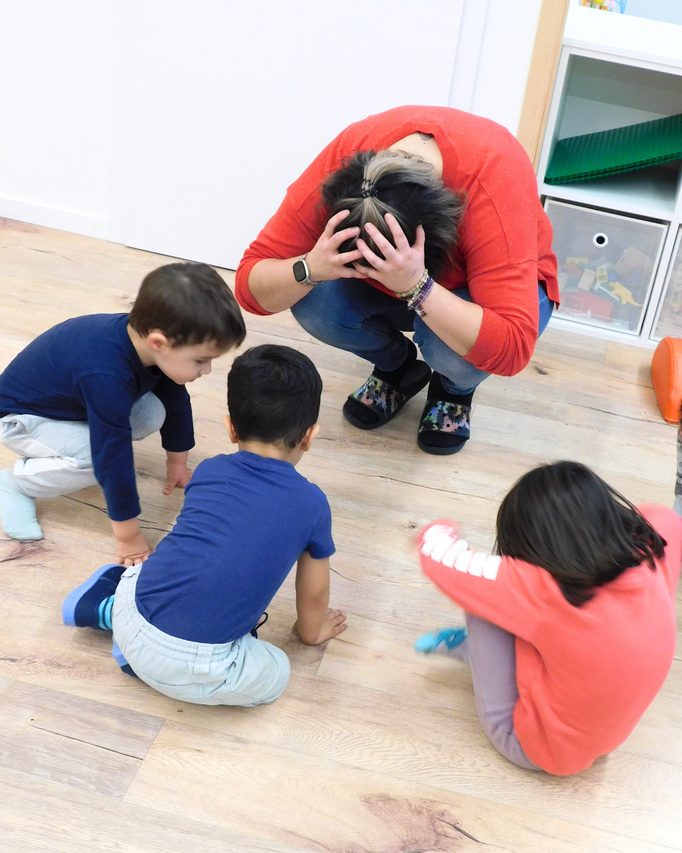 Am allerliebsten sind wir durch die Kita gesprungen und haben dann bei der Betreuerin versucht über die Elemente zu hüpfen. Anschliessend haben wir uns versucht wie ein Igel ganz kleinzumachen. Gar nicht so einfach haben wir gemerkt. Und zum Schluss durften wir uns noch strecken und dehnen. Die Betreuerin hat uns mit Tüchtern gestreichelt. Das hat uns ganz schön gekitzelt.