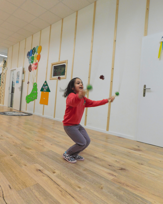 Wir haben so viel Platz in der Kita und mit den verschiedenen Elementen hatten wir sehr viel Spass. Das Balancieren war nicht für alle einfach. Wir haben auch gemerkt, dass es einen Unterschied gibt, wenn wir es mit oder ohne Finken machen. Danach durften wir Seilspringen. Auch da gab es Kinder, die dies schon gut konnten und andere fanden es lustig, mit dem Seil zu springen. Die Betreuerin hat uns auch erklärt, dass es nicht darum geht wer der Beste ist, sondern, dass wir an der Bewegung Spass haben und das hatten wir auch!