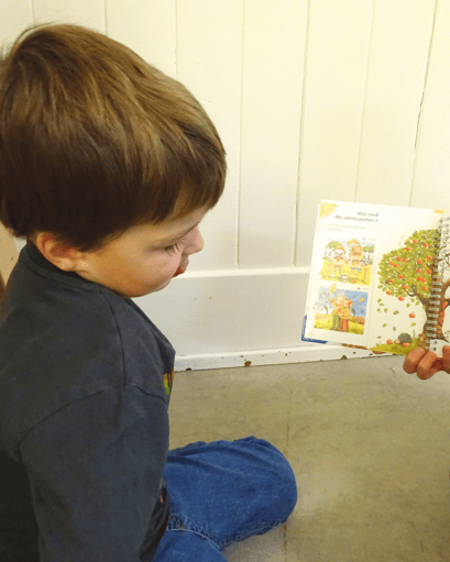 Dieses Lied haben wir heute mit unseren Betreuungspersonen gelernt. Alice erzählte uns, als wir im Kreis waren, dass wir diese Woche mit dem Thema der vier Jahreszeiten beginnen. Wir haben uns ein Buch angeschaut, in dem alle vier Jahreszeiten abgebildet waren. Wir haben einander erzählt, wie die Jahreszeiten sind und was man da machen kann.