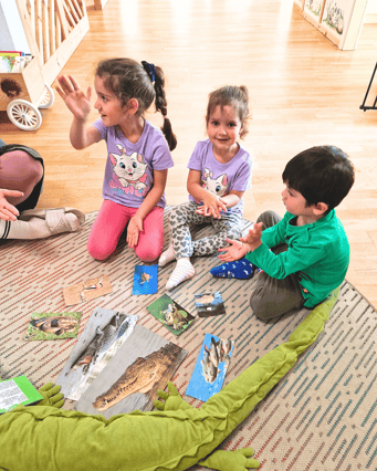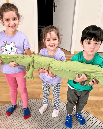 Danach haben wir alle zusammen ein Krokodil mit unseren Händen gemalt. Das hat super viel Spass gemacht und wir waren alle stolz auf unsere Kunstwerke. Zum Abschluss haben wir unser «Krokodilsong» gesungen. Unser Tag war wirklich aufregend. Wir haben gemeinsam viel Neues über dieses faszinierende Tier gelernt und hatten dabei noch jede Menge Spass. Wir freuen uns schon auf das nächste Abenteuer, das wir gemeinsam erleben werden!