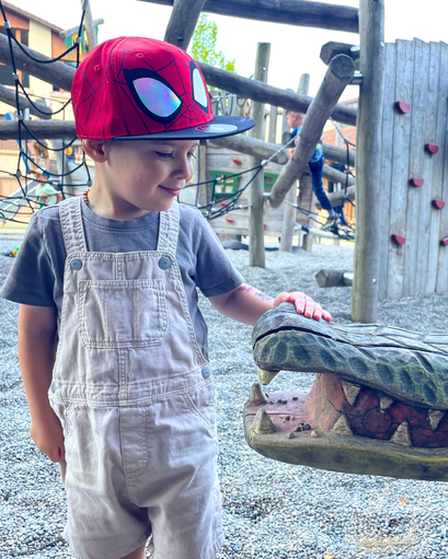 An dem mysteriösen Ort angekommen, haben wir uns auf die Suche gemacht und das Schiff schnell gefunden. Es hat sich nämlich auf einem Spielplatz 🛝 versteckt. Den ganzen Morgen durften wir nun gemeinsam mit Felix den Spielplatz entdecken. Klettern 🧗, rutschen 🛝, mit Steinen spielen 🪨, schaukeln und das Piratenschiff erkunden 🏴☠️, um zu schauen, ob sich vielleicht noch ein Schatz darin verbirgt 💎. Das hat viel Spaß gemacht.