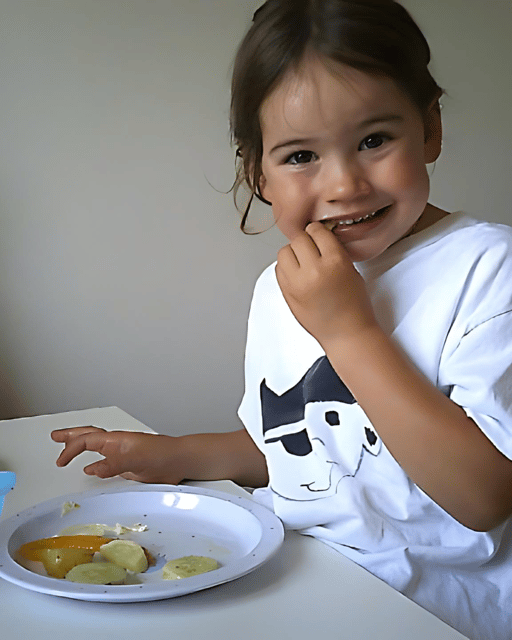Wir haben einmal in der Woche ein Piratenessen 🏴‍☠️🍴, das heisst dann dürfen wir mit den Händen essen, egal was es zum Mittagessen gibt. Auf das Piratenessen freuen wir uns immer sehr 😊, da es für uns immer spannend ist, das Essen mit den Fingern zu essen ✋. Im Mittagssingkreis 🎶 verteilte Evi uns unsere Piraten-T-Shirts aus der Piratenkiste 📦🏴‍☠️, jeder von uns hat sein eigenes T-Shirt mit Namen 👕. Wir zogen sie alle gemeinsam an und danach rief uns Chiara zu Tisch 🪑. Als wir alle unseren Platz gefunden hatten, sagten wir gemeinsam unseren Piratenspruch auf 🏴‍☠️📣. Danach rief uns Chiara und sagte, was es zum Mittagessen gibt: Ofengemüse mit Kartoffeln 🥔🥦 und Cipollata 🌭 und noch einen leckeren Salat 🥗 von unserem eigenen Garten mit Gurken 🥒. Dieses Essen fanden wir sehr lecker 😋