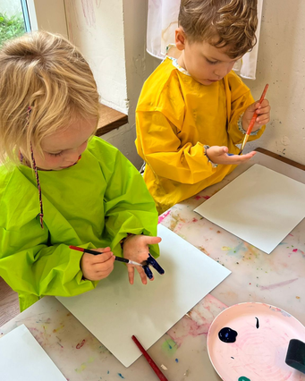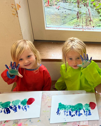 Anschließend der Geschichte wurde heute ein ganz besonderes kreatives Projekt umgesetzt: Eine farbenfrohe Zeichnung der Raupe Nimmersatt 🖼️, die die Kinder gemeinsam gestaltet haben 🤲. Um die Zeichnung zu gestalten, entschieden sich die Kinder für eine besonders lebendige und spaßige Methode: Handabdrücke 🖐️.