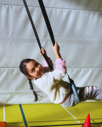 Wir Kinder lieben es, an den Ringen zu schwingen ⭕🤩. Dafür setzen wir uns mit den Beinen in die Ringe hinein und die Betreuer geben uns dann jeweils an, und wir schaukeln dann ganz hoch hin und her 🛝. Das fühlt sich so toll an, als ob man ein wenig fliegen könnte 🕊️✨.