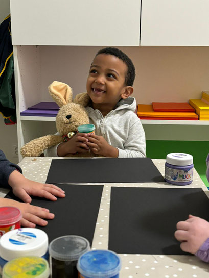 nicht fehlen. Zuerst haben wir uns unsere Malschürzen angezogen, damit unsere Kleider nicht schmutzig werden. Anschliessend hat uns unsere Erzieherin erklärt was wir heute machen und was wir dazu