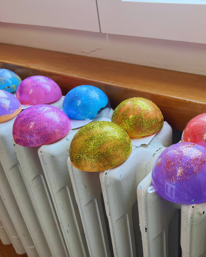 Nach dieser leckeren Stärkung durften wir allesamt in unserem Gumpizimmer spielen und toben. 🤸♂️🎶 Nach und nach riefen uns die Betreuerinnen dann noch ins Bastelzimmer, wo wir für Mama und Papa eine Weihnachtskugel mit viel Farbe und Glitzer gestalten durften. 🎨✨🎅