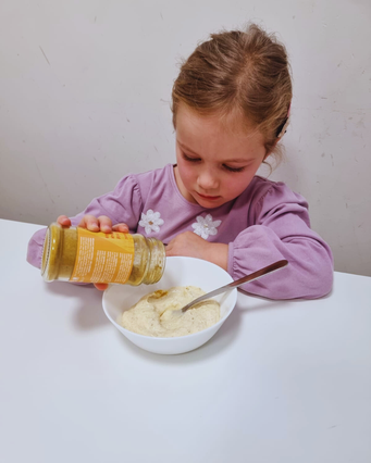 zu erhalten 🎨🥣: eine Sauce mit Curry, eine mit Paprika und die letzte mit Kräutern 🌿. Diese strichen wir dann auf die Darvida und legten unser geschnittenes Gemüse darauf. Am Ende hat uns die