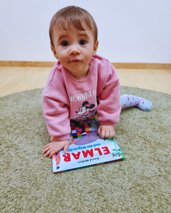 zu erraten: Es ist ein Tier 🐘, es hat viele Farben wie der Regenbogen 🌈, und wir haben dazu ein Buch 📖. Wir überlegten und kamen auf Elmar der Elefant.