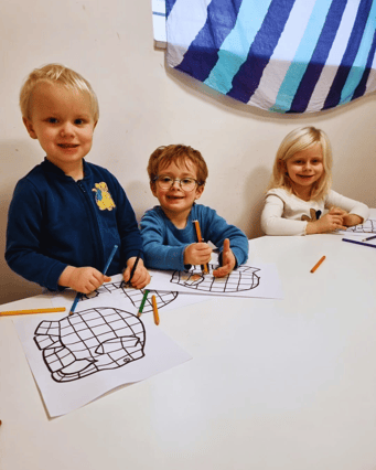 Zuerst durften wir die Geschichte von «Elmar und die Nilpferde» hören 👂📖 und dann alle zusammen einen eigenen Elmar mit vielen Farben ausmalen 🎨🖌️. Alle Elefanten waren bunt wie ein Regenbogen 🌈, doch jeder Elefant sah anders aus.
