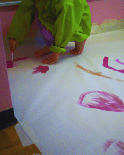 Anhand der von uns ausgesuchten Aktivitäten, hat Maxima dann verschiedene tolle Posten vorbereitet, die wir alle ausprobieren durften 🏆. Los ging es im Gang 🚶♀️. Dort durften wir einen Parcours zu den verschiedenen Posten machen 🏃♂️. Wir konnten über Blumenkissen hüpfen 🌸, durch eine Röhre kriechen 🚪, über Schwämme laufen 🧽 und noch viele andere Bewegungselemente ausprobieren 🔄. Beim Posten im Bastelzimmer 🎨 durften wir aussuchen, mit welchen Techniken wir malen wollen 🎨. So durften wir heute für einmal auch am Boden malen 👩🎨.