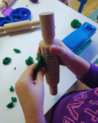 Im Gumpizimmer konnten wir mit verschiedenen Bällen ⚽️ spielen, Bälle fangen 🤾♀️ und werfen 🏀. Beim letzten Posten im Gruppenraum, durften wir mit Knete experimentieren 🏗️. Wir formten verschiedene Figuren 🦄 und den Betreuerinnen haben wir Knet-Spaghetti serviert 🍝.