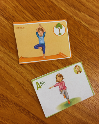 Wir haben mit all unseren Sinnen verschiedene Bewegungen gemacht 👐 und unser Körper kam so zur Ruhe 🕊️. Die gesamte Kindergruppe machte mit 👧👦 und wir nutzten die Zeit, um gemeinsam zu entspannen 🤝. Jeder von uns durfte ein Bild aufdecken 🎴, und Erjona oder Albina zeigten uns, wie man die Übung am besten ausführen kann 📖.