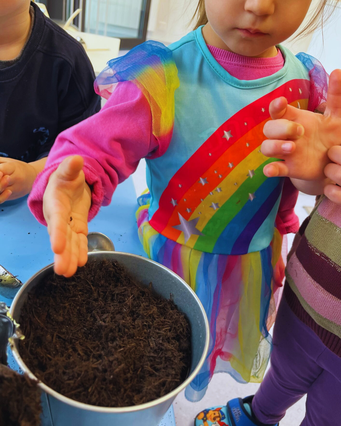 Dann kam der spannendste Moment: Wir haben die winzig kleinen Samen 🌱 ganz vorsichtig in die Erde gestreut.