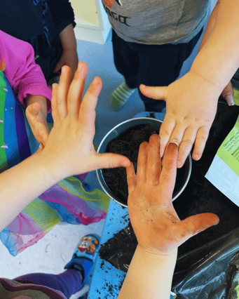 Anna kam zu mir und drei anderen Kindern 👧👦👧👦 und teilte uns mit, dass wir Basilikum anpflanzen dürfen.