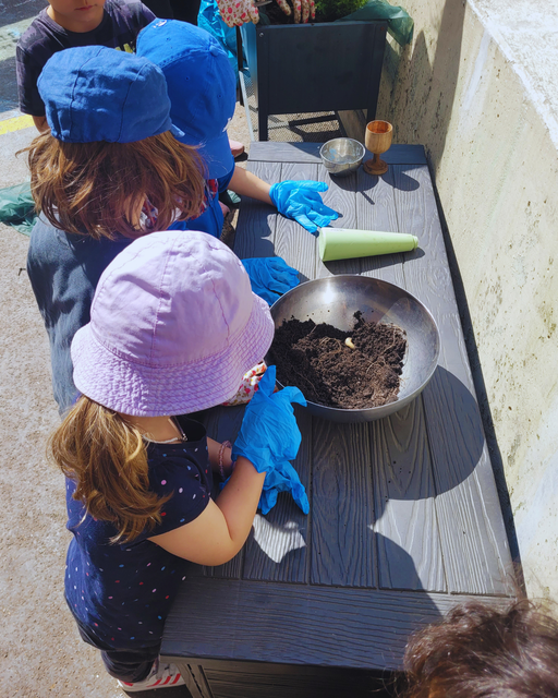 Zurück in der Kita 🏡 haben wir mit den Vorbereitungen begonnen. Leider haben wir dann festgestellt, dass es in einem Hochbeet 🪴 Engerlinge 🐛 hatte. Die Betreuerin 👩🏫 hat uns erklärt, dass diese Tiere die Pflanzen fressen 🐞 und so haben wir die gesamte Erde entsorgt 🗑️.