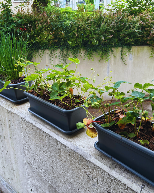 Wir kauften gemeinsam verschiedene Pflanzen ein 🛒 und haben uns für Peperoni 🫑, Cherry Tomaten 🍅, Erdbeeren 🍓 und Himbeeren 🍇 entschieden. Zudem durften auch noch Rosmarin 🌿, Schnittlauch 🌱, Petersilie 🌿 und Currykraut 🌿 mit uns mitkommen. Natürlich mussten wir auch noch neue Erde 🪴 kaufen.