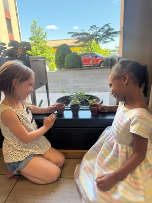 Silvana und Gaia haben uns erklärt, dass Blumen nicht nur Wasser brauchen, sondern auch viel Sonne und ganz viel Liebe. Jetzt stehen unsere bunten Töpfe auf der Fensterbank, und wir schauen jeden