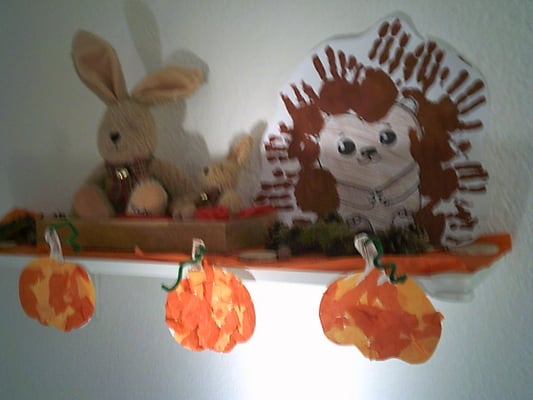 Ende staunten wir, wie schön er geworden ist. Aus vielen kleinen Handabdrücken entstand ein gemeinsames Kunstwerk. Chiara föhnte den Igele danach das er schneller trocknete. Danach stellten wir