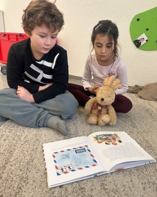 spannende Briefe. Ein Buch voller Abenteuer hat er uns auch mitgebracht, und wir schauen immer wieder gemeinsam hinein.