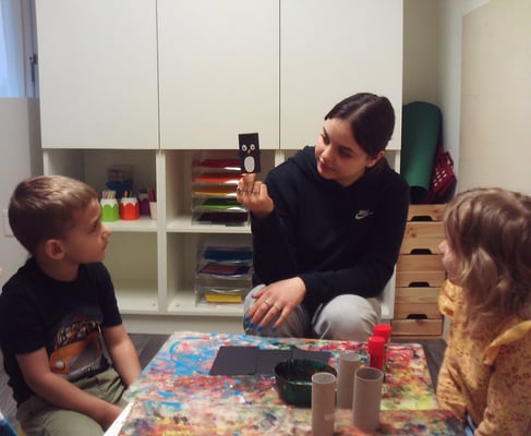 Zuerst hat Margarida uns das Fingerspiel „Fünf kleine Pinguine“ gezeigt 🖐️🐧. Wir haben mit unseren Händen und Fingern die Bewegungen nachgemacht und die Pinguine beim Watscheln, Rutschen und