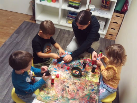 Manchmal war es gar nicht so einfach, die kleinen Papierteile mit Kleber zu bestreichen und sie an die richtige Stelle auf die Klorolle zu kleben 🧴. Wir haben uns gegenseitig geholfen und Margarida hat uns dabei unterstützt 🤝. Am Ende waren wir stolz auf unsere Pinguine und jeder Pinguin sah ein bisschen anders aus 🐧.