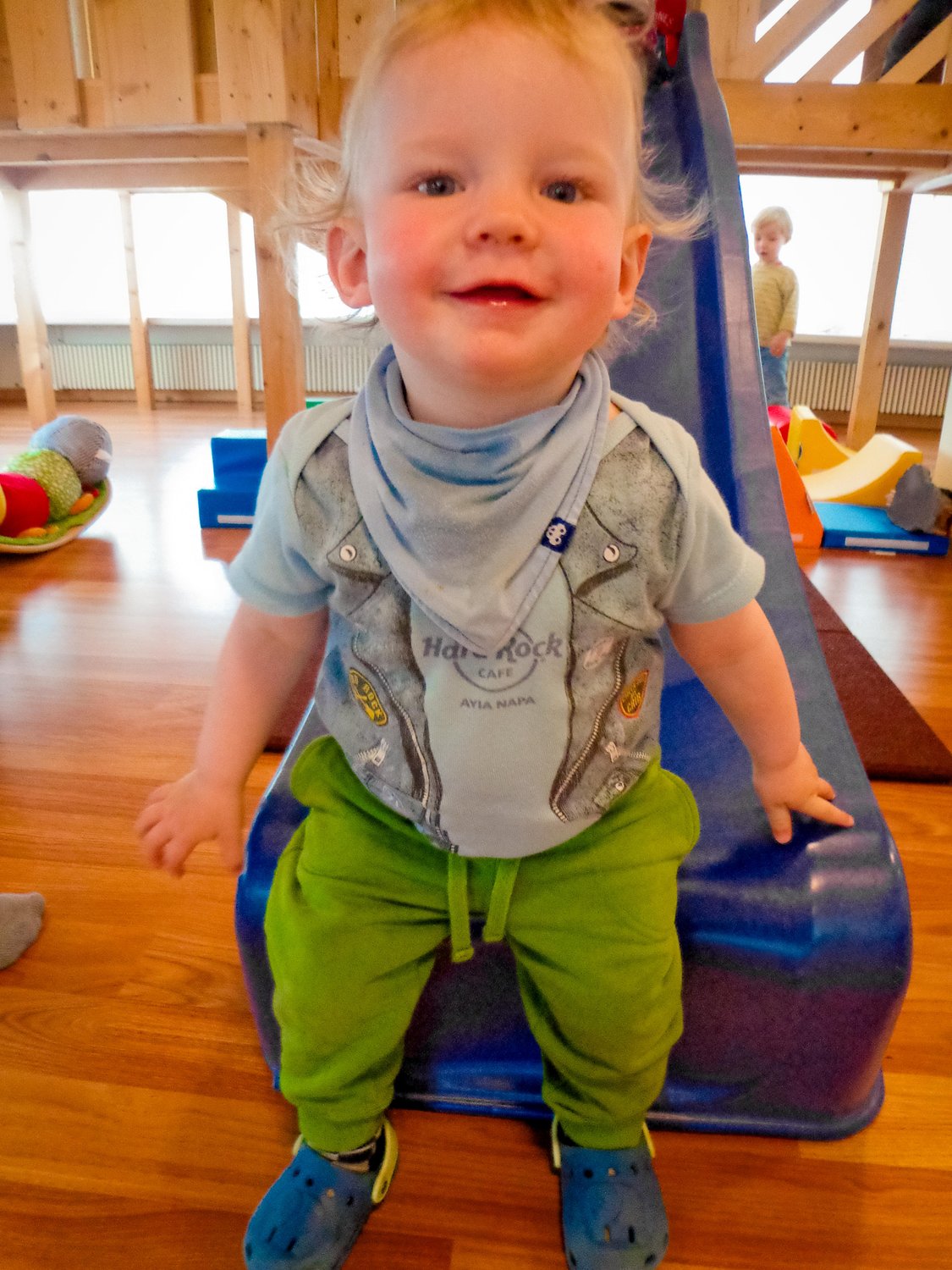 Heute Morgen haben die Betreuerinnen den Morgenkreis und wir besprachen, was wir heute unternehmen werden. Wir schauten aus dem Fenster und sahen die Sonnenstrahlen und entschieden uns, dass wir in den Garten möchten.