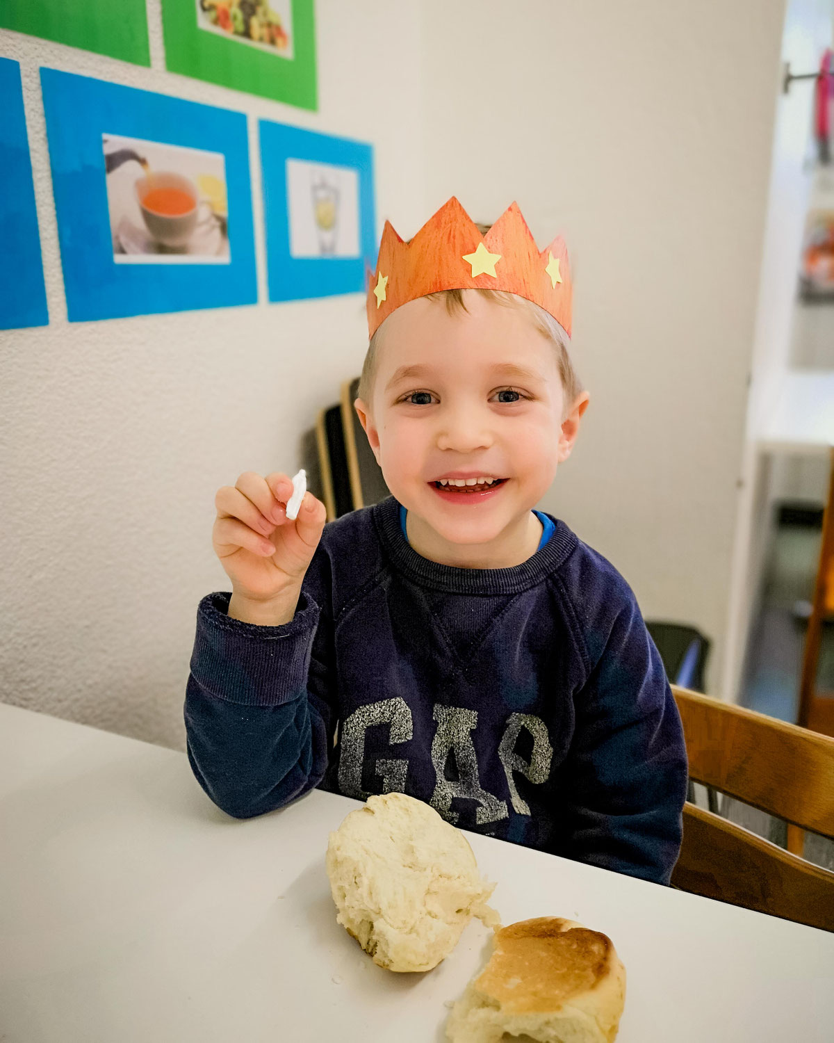Passend zum bevorstehenden Dreikönigstag backten wir gemeinsam einen Dreikönigskuchen.